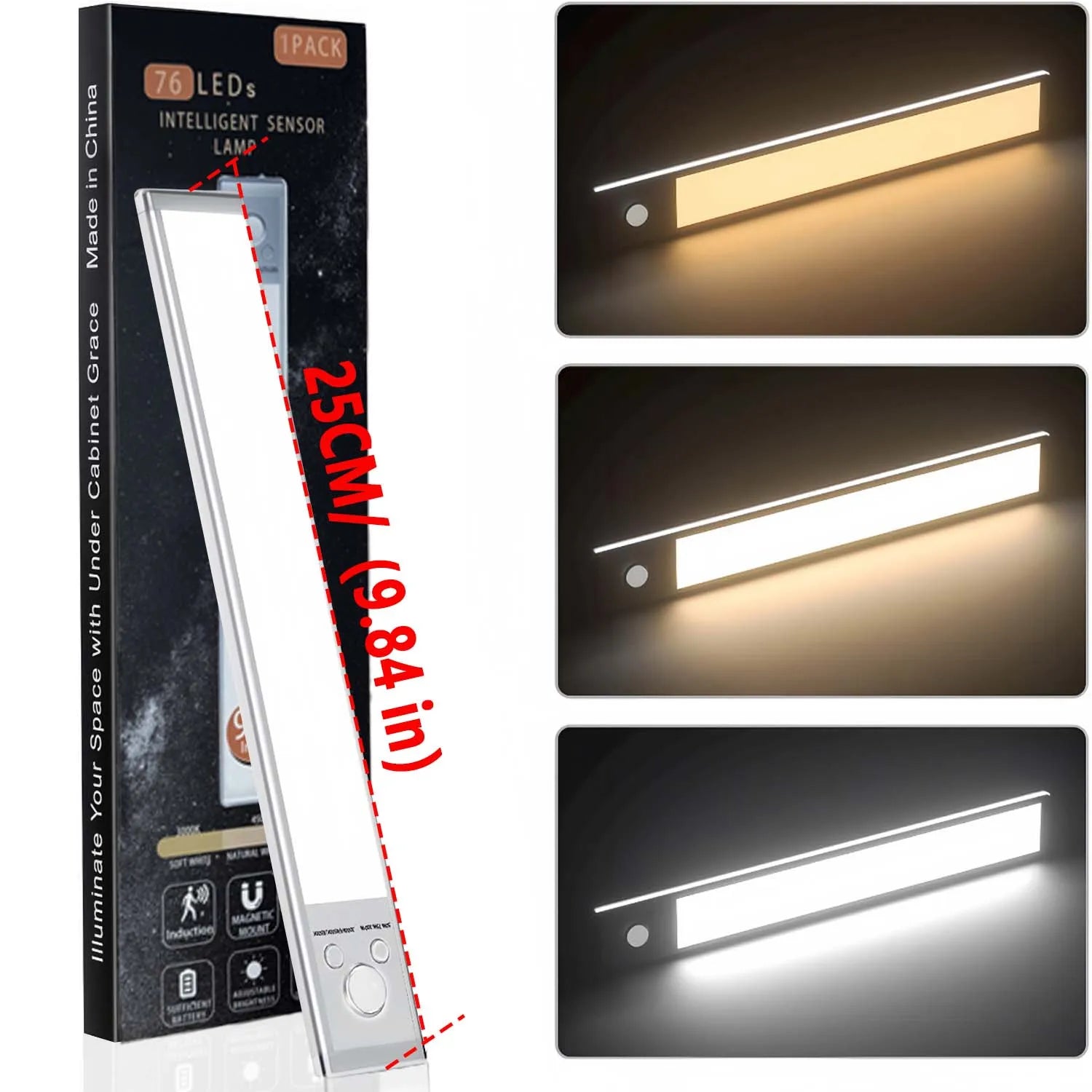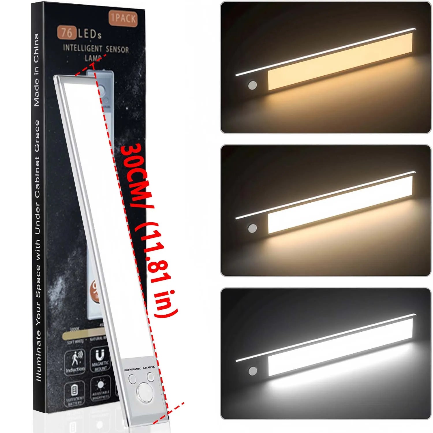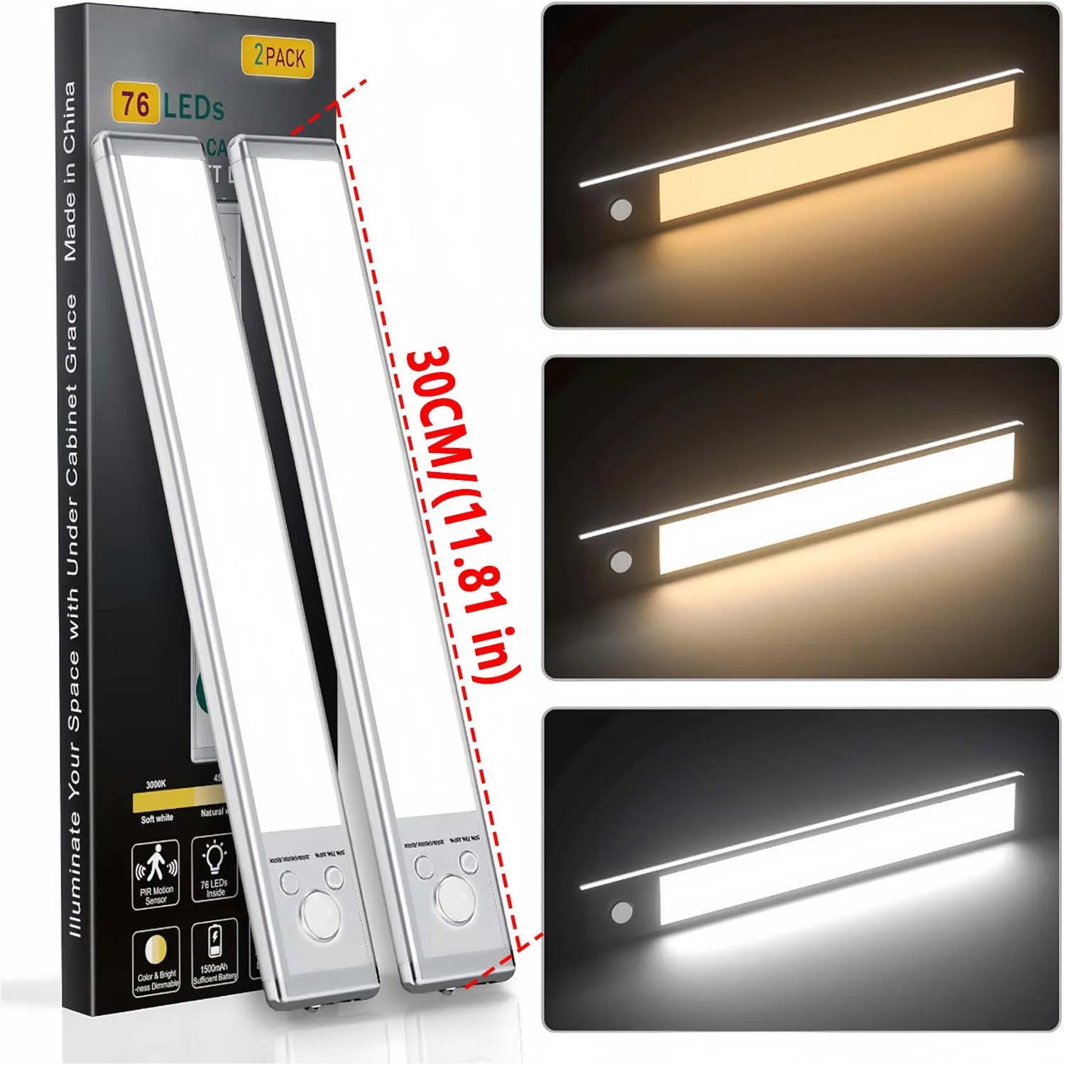 LED Cabinet Light USB Type-C Rechargeable Motion Sensor Led Lamp for Kitchen Wardrobe Cabinet Lighting 25Cm/30Cm -